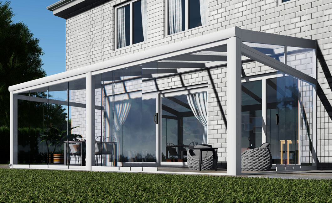 • Maximale Flexibilität: Parallel zueinander laufende Glasschiebeelemente verschließen an kühlen Tagen den Kaltwintergarten. In der wärmeren Jahreszeit schenken die flexiblen Glasbereiche bei Regen oder Wind ausreichend Schutz, um dennoch die Zeit geschützt im Freien zu verbringen.